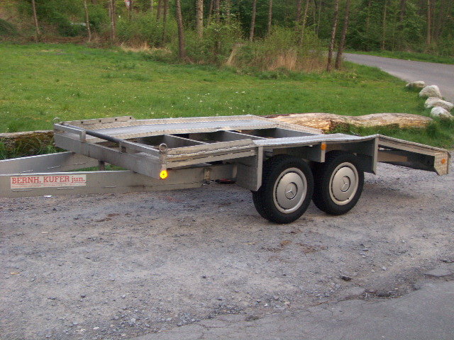 Unser Autotransportanhänger der Marke Kufer (Hochlader) war in dem Zeitraum von 05.11. – 16.11.2025 in 70565 Stuttgart-Möhringen (Industriegebiet zwischen Stuttgart-Vaihingen und Stuttgart-Möhringen) in der Handwerkstraße Höhe Hausnummer 45 neben der Firma Scharrtruck unweit der Tankstelle beladen mit einem roten Smart Coupé geparkt. Unbekannte Diebe haben die Auffahrschienen aus Aluminium aus der mittig positionierten Verankerung entfernt und gestohlen. Der dreiste Diebstahl wurde vermutlich nach Einbruch der Dämmerung in der Dunkelheit begangen. Das beigefügte Archivbild zeigt den Autotransportanhänger seitlich von vorne.