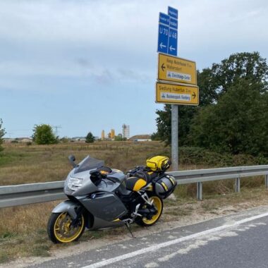 Ich fuhr am 19.09.2023 mit meinem Motorrad BMW KW-T 77, um ca. 13:10 h von der A 113 kommend Richtung Waltersdorf. Nach Haltephase an der Ampel auf der Brücke (Zubringer aus der Gegenrichtung zur A113/117 Ri. Berlin/Dresden) ist ein geradeaus fahrendes Fahrzeug über die Begrenzungslinie (beim Überholen der abbiegenden Fahrzeuge), auf meine Spur gefahren.